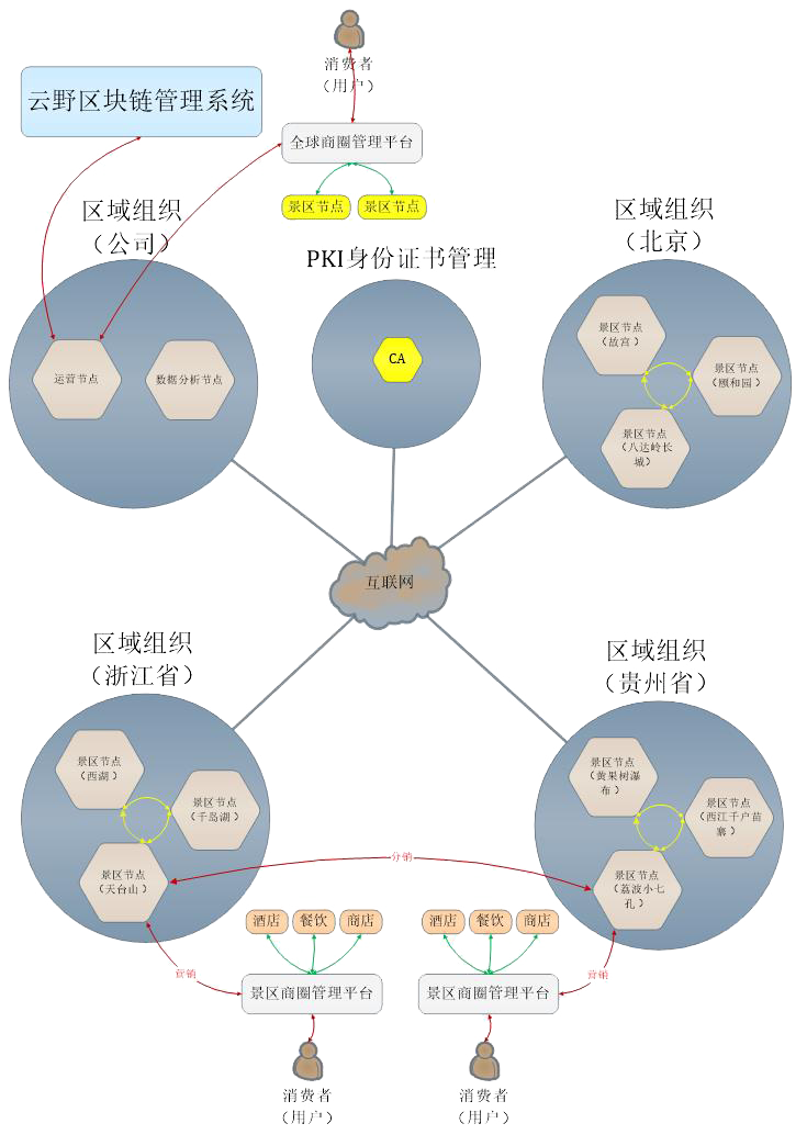 全域旅游區塊鏈商圈營銷平臺主要在HyperLedger(超級賬本)的基礎上搭建區塊鏈網絡,使用HyperLedger中的Fabric實現全域旅游營銷區塊鏈應用場景,服務于旅游行業,幫助目的地產品提供商精準分銷和營銷。