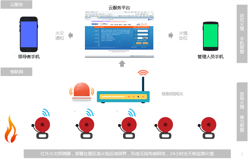 以紅外“傳感器網(wǎng)絡(luò)”為支撐,全天候、全自動(dòng)監(jiān)測(cè)和預(yù)警景區(qū)人行道、車(chē)行道、觀光區(qū)、聚集區(qū)和休閑區(qū)等人員活動(dòng)頻繁的林區(qū)及其周界的早期火險(xiǎn)災(zāi)現(xiàn)象,實(shí)施網(wǎng)絡(luò)化、自動(dòng)化的氣象火險(xiǎn)等級(jí)預(yù)測(cè)預(yù)警、實(shí)時(shí)火險(xiǎn)災(zāi)監(jiān)測(cè)預(yù)警,有效保護(hù)景區(qū)文物和森林資源,提高管理水平和防火能力,轉(zhuǎn)變管理模式,完善工作機(jī)制,降低運(yùn)營(yíng)成本,提升社會(huì)效益,保障景區(qū)可持續(xù)的健康協(xié)調(diào)發(fā)展。