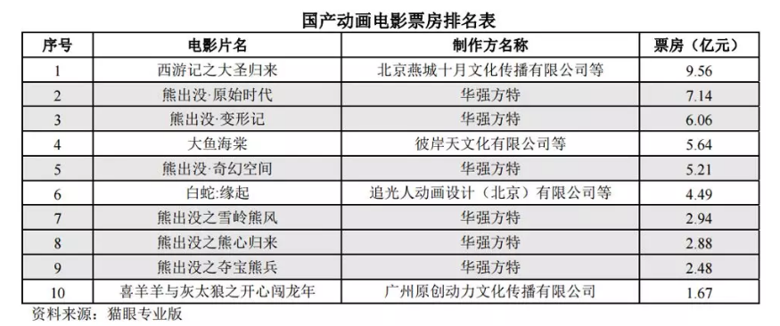 此外,讓華強方特十分驕傲的是,截至2019年6月,在國產動畫電影票房榜上,“熊出沒”系列承包了6席,累計總票房近27億。