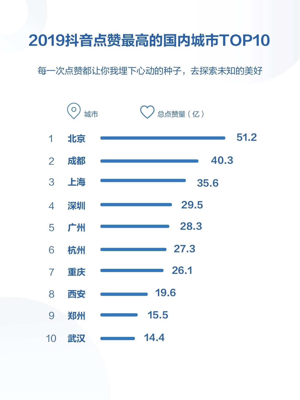 從過去拍張照片到現(xiàn)在“拍個(gè)短視頻”,人們的旅行習(xí)慣已悄然改變,這種習(xí)慣催生了文旅行業(yè)“打卡經(jīng)濟(jì)”。根據(jù)抖音發(fā)布的數(shù)據(jù),2019年,抖音用戶全球打卡6.6億次,最受歡迎的國外城市是曼谷、首爾和東京,被點(diǎn)贊最多的國內(nèi)城市是北京、成都和上海。根據(jù)城市形象視頻點(diǎn)贊量,北京是2019年度“抖音之城”,收獲51.2億次點(diǎn)贊。