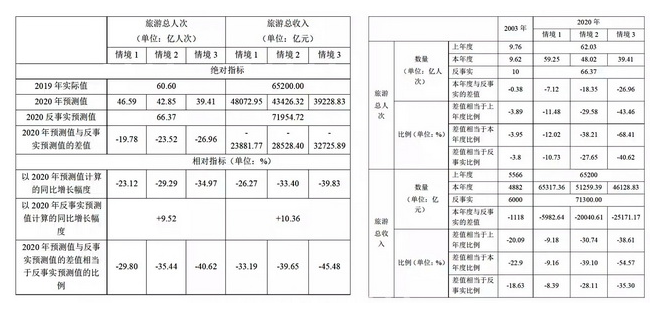 中國(guó)社會(huì)科學(xué)院旅游研究中心的研究顯示,在謹(jǐn)慎預(yù)測(cè)的情境下,2020年旅游總?cè)舜蔚念A(yù)測(cè)值為39.41億人次,比上年同期下降34.97%;旅游總收入的預(yù)測(cè)值為39228.83億元,比上年同期下降39.83%。疫情造成2020年旅游總?cè)舜蔚臐撛谙陆狄?guī)模為26.96億人次、下降比例為40.62%,造成旅游總收入的潛在損失為32725.89億元、損失比例為45.48%。