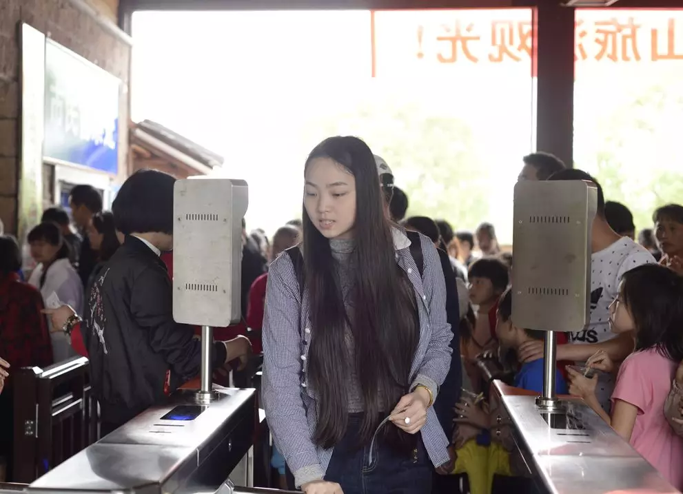 (游客正在通過人臉識別進入景區)