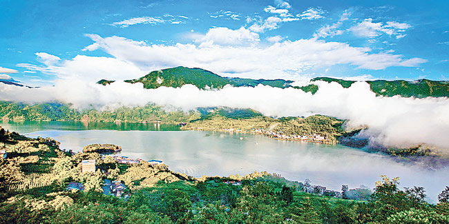 云霧繚繞的馬湖。唐曉軍 攝