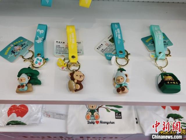 圖為黃山風(fēng)景區(qū)內(nèi)出售的聯(lián)名款泰迪熊系列商品。 刁海洋 攝