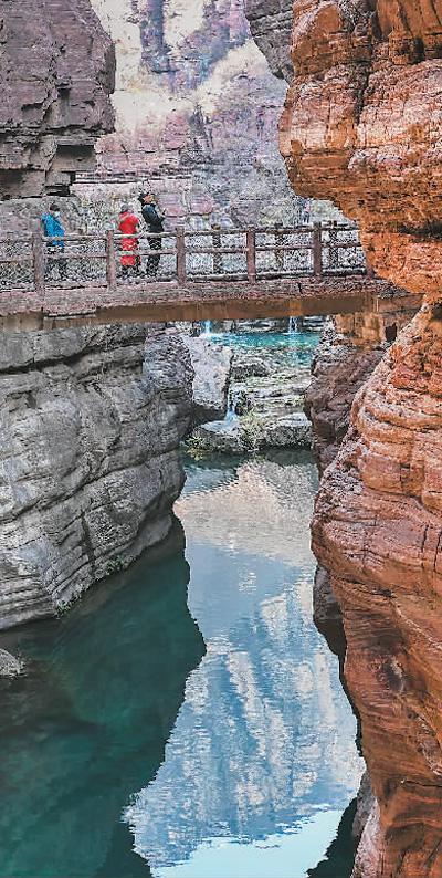 游客在河南云臺山紅石峽游覽。新華社記者陶 明攝