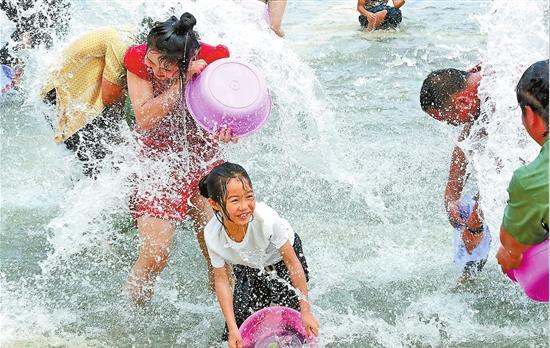 游客參與潑水狂歡 記者 楊崢 攝
