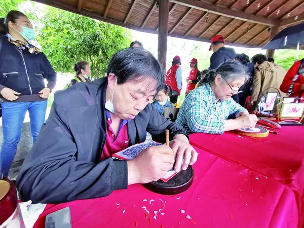 △孝感雕花剪紙演示現(xiàn)場
