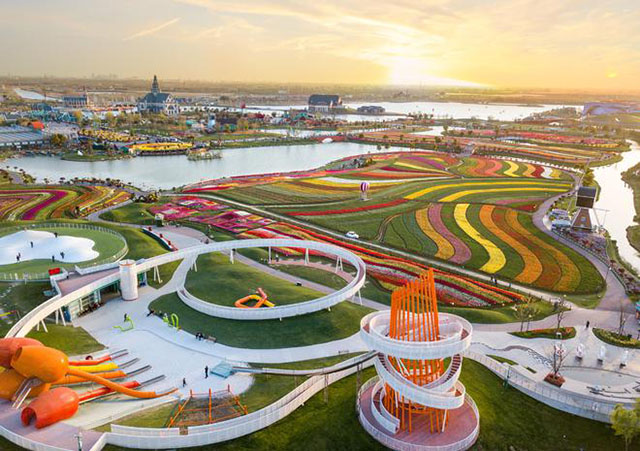 荷蘭花海景區是斗龍港生態旅游度假集團“花”經濟的重點“IP”。百萬株郁金香盛開季,日接待游客近30萬人次。在景區北側的產學研基地,記者看到,成片的海棠花苗正在溫室里孕育,技術員和養護工人在盯防呵護。“我在這里工作11年了,土地租給景區有租金,我自己一年還有2萬多元的收入。”70歲的李小蘭是附近的村民,提到景區,滿臉笑容,“花海讓我一家有了幸福生活!”