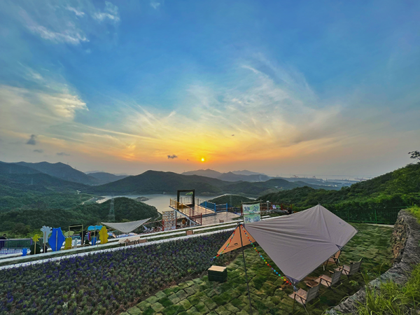 林間參天古木挺拔入云,翠綠的枝葉交織成一道道綠色屏障,將外界的喧囂與紛擾隔絕在外。綠蔭下,一頂頂天幕支起,三五人圍坐其中,或談笑風(fēng)生,或閉目養(yǎng)神。