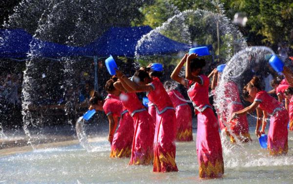 云南多個(gè)縣市都打造了潑水廣場、每年制定潑水節(jié)日程,安排賽龍舟、中外大趕擺、音樂會(huì)等活動(dòng)。在西雙版納州景洪市傣族園景區(qū),每天都會(huì)開展?jié)娝駳g,游客一年四季都能體驗(yàn)潑水節(jié)的快樂。